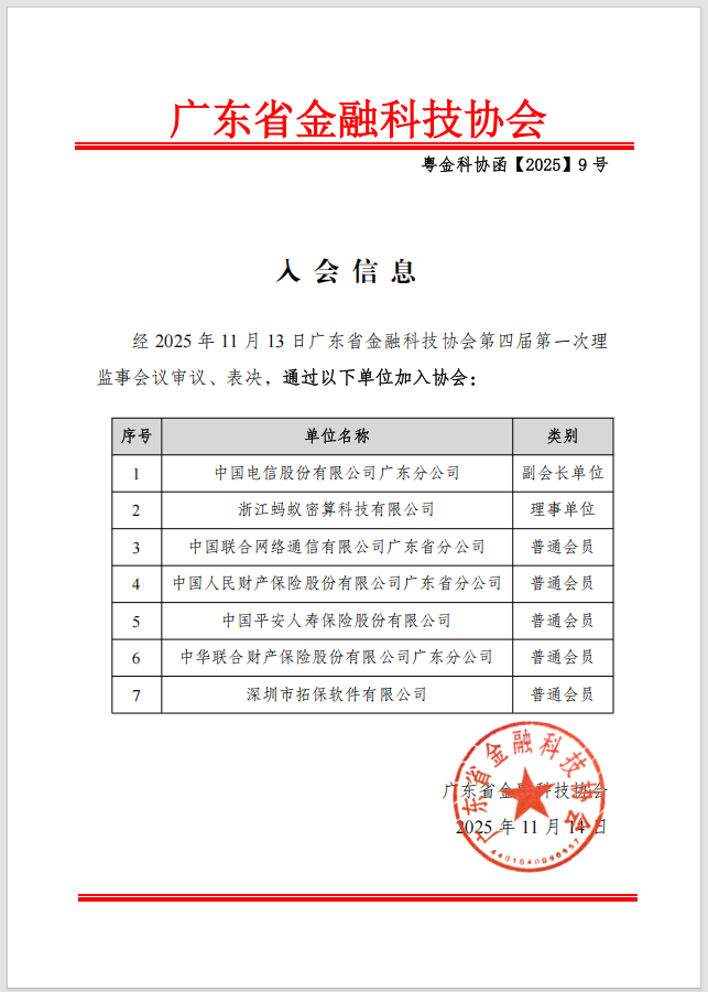 广东省金融科技协会新会员信息